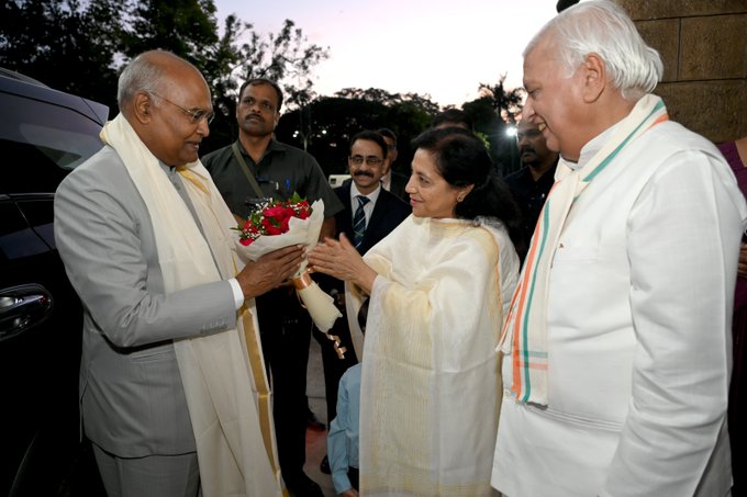 Photo Gallery - Hon'ble Governor Shri Arif Mohammed Khan and Smt Reshma Arif received Shri Ram Nath Kovind ji, Hon'ble former Rashtrapati on his arrival at Kerala Raj Bhavan on 19th August.