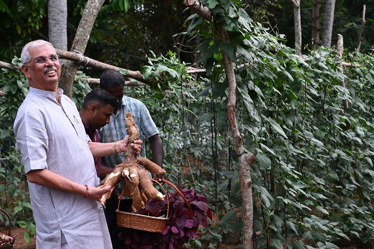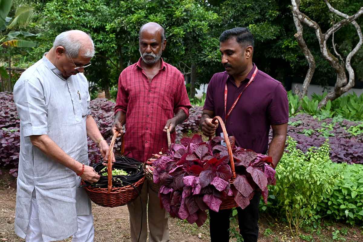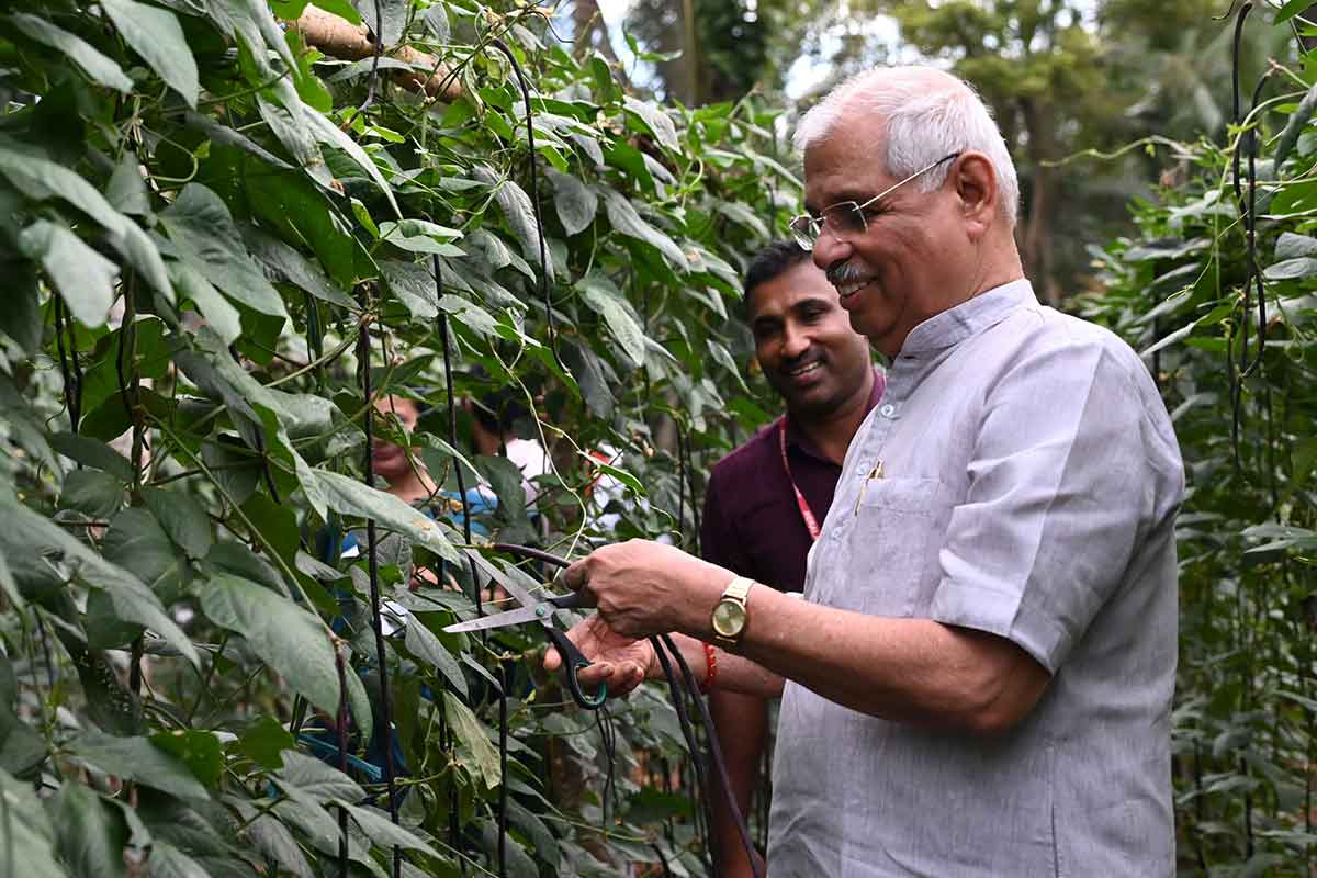 Photo Gallery - Hon'ble Governor Shri Rajendra Vishwanath Arlekar harvesting vegetables at the Raj Bhavan Garden
